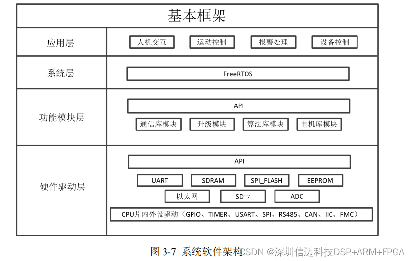 如图 3-7 所示是本文所设计的驱动一体控制器的软件架构。该软件系统从低到高共