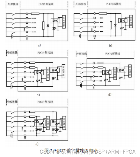 和一个公共端组成。如图 2-9 中 a)和 b)是 PLC 直流输入电路的两种不同形式,区别在于