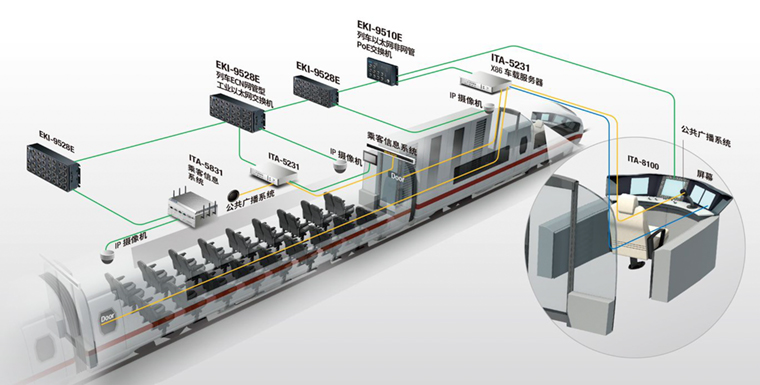 信迈的M12交换机通过了EN50155认证,满足了广泛的应用在行驶中的火车,因为它保证了在振动和状态下的数据传输。同时应用在乘客信息系统(PIS),与LCD和LED显示板的提供旅游信息,新闻和广告,性能可靠;视频娱乐系统(VES),提供了安装在每一个座位背面娱乐信息发布,同时提供IP监控,保证这些设备能够可靠地与摄像机连接。适用于各种运行车辆,并增加列车的安全性和视频监控,包括电源插座的位置,电压波动,地铁隧道中的同步数据传输和存储。设备符合EN50155标准,EKI-6000系列工业以太网交换机是列车车辆管理系统中最适合的解决方案。