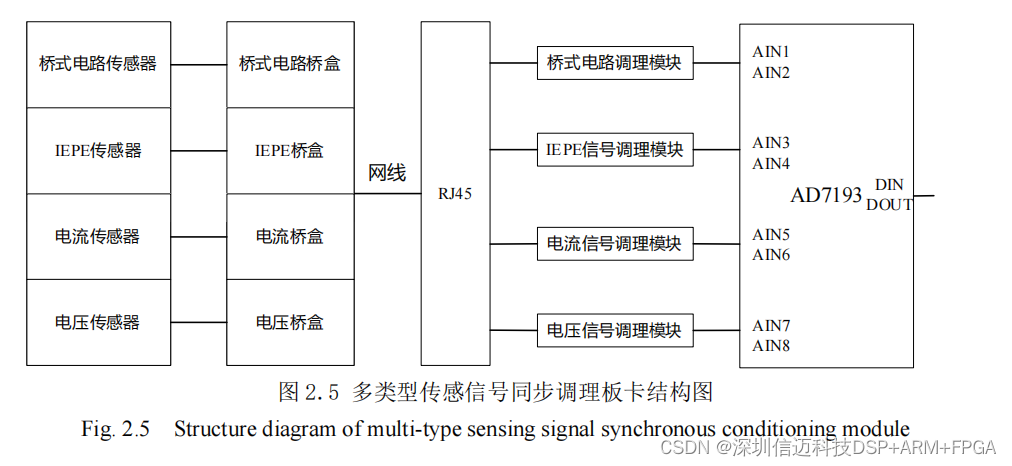 本章开发了一款基于 AD7193+RJ45 的多类型传感信号同步调理板卡,如图 2.4 所