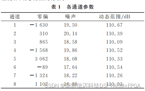 范围一列中可以看出,系统各通道实现的动态范围都接近