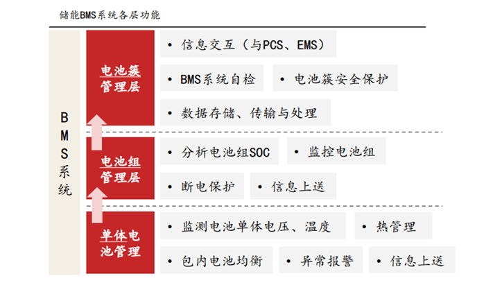 (2)电池管理系统BMS:担任感知角色,主要负责电池的监测、评估、保护以及均衡等。
