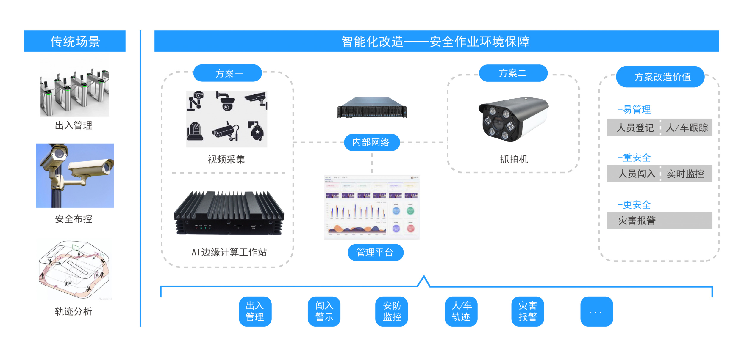 工业园区多为生产型和物流型 企业 ,劳动人员密集,外来人口多,农民工多,人员流动大,车流量大,易引发车祸、破坏公共设施和绿化工程等案件; 英码智慧园区方案,可实现100%管理所有出入人员;对园区内所有人/车进行轨迹跟踪,烟火检测,通过合理的路线规划,提高园区运作效率;另外人员闯入 识别 精度可达95%以上,烟雾、明火识别精度可达90%以上,保障园区安全、有序、高效运作。