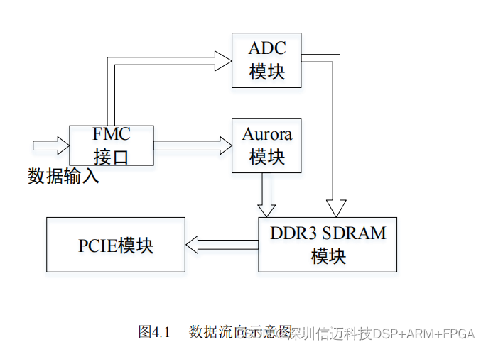 率为 5.0Gbps,总速率为 40Gbps;DDR3 SDRAM 模块用来实现对 Aurora 数据或 ADC