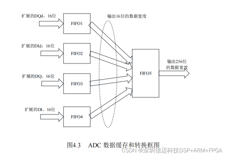 示。其中,FIFO1~FIFO4 是读写位宽都为 16bit 的同步 FIFO,FIFO 时钟为 ADC 芯片