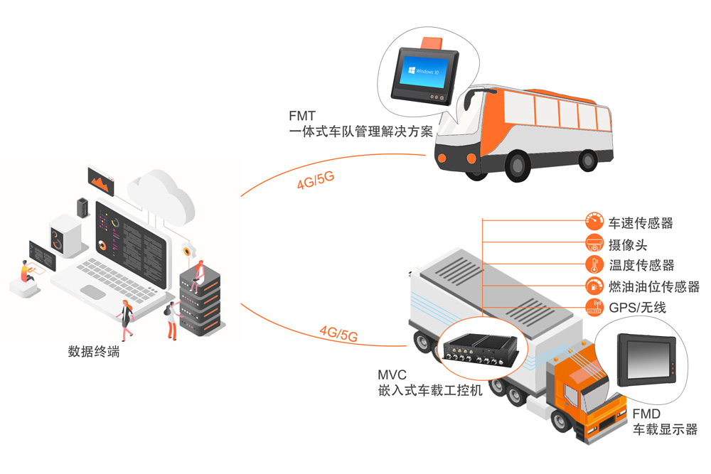 提供二种车载电脑解决方案,以满足不同的使用场景。一是一体式车载电脑,它可提供人机交互界面,客户可选择搭配 7 至 12.1 寸触摸屏的车载电脑,即VT、MVT、FMT系列。另一种则是针对数据收集和控制的嵌入式车载工控机,即VC、MVC系列。该系列需额外外接显示屏幕或通过手机远程控制。