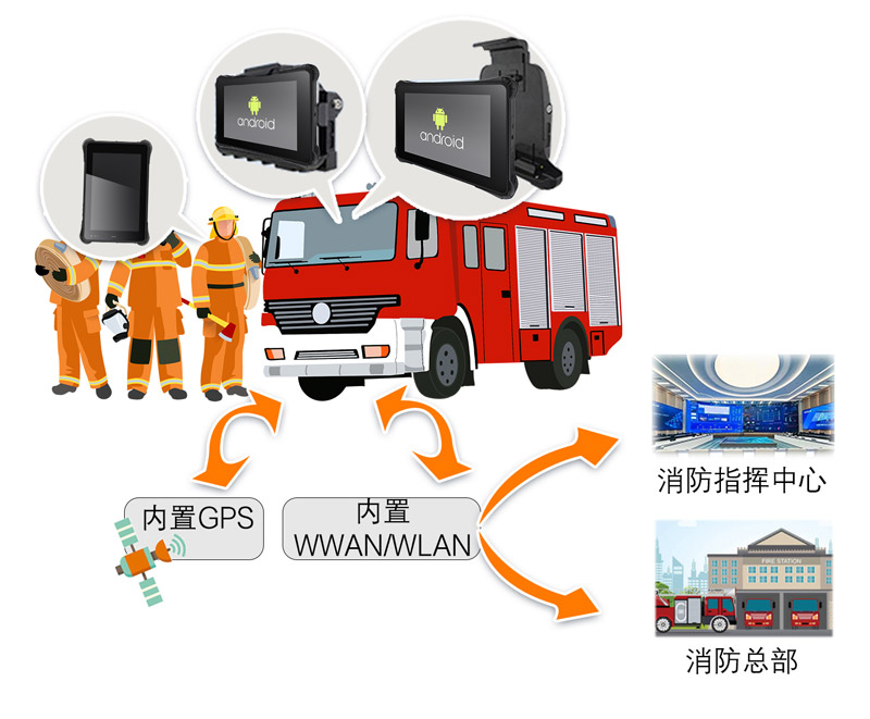 随着社会对消防安全的要求不断提高,电子设备在消防中的应用越来越普及,消防员或应急响应小组的成员为了快速掌握信息,迅速地处理事件并避免任何潜在的危险,在消防车上安装了。通过专用的车载支架安装在消防车驾驶室,配合4G/WIFI运行消防调度软件系统,快速提供了实时信息,数据安全性,执行消防应急调度作业。