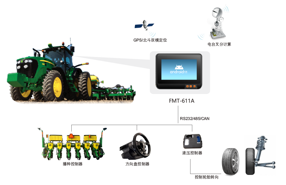 当前农耕车车载电脑 主要的 功能,是要实现农耕车的精确的定位和导航,更加先进的系统则要实现农耕车自动驾驶,与农耕车上相关传感器的通讯(例如耕土深度的传感器, 油量存量传感器…)来实现更多的自动化、 信息 化的功能。