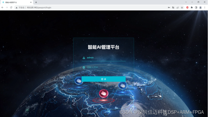 通过浏览器输入设备 IP 打开平台登录页面,输入用户名/密码:admin/123456 进行登录。