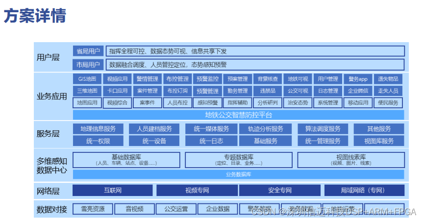 地铁公交智慧防控解决方案的核心建设理念是打造安全、高效、便民、智慧的地铁公交综合治安防控体系。