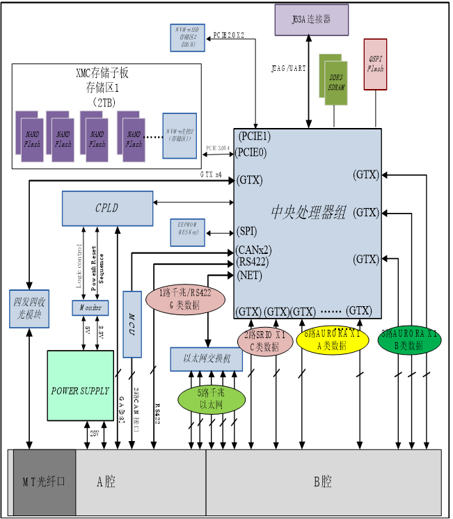 可通过Aurora接口实现多类型数据实时记录,总读写带宽不小于1.6GB/s