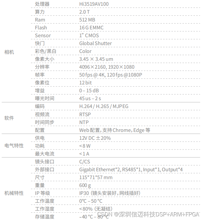 Hi3519AV100 处理器⾼速全局快⻔相机