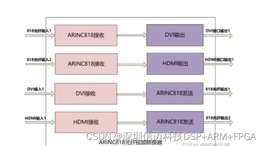 ARINC818光纤视频 转换器 是针对航空电子数字视频总线协议(Avionics Digital Video BUS,ADVB)的高性能视频光纤转换测试设备,采用高集成度FPGA芯片实现ARINC818协议,实现和数字视频接口DVI(Digital Visual Interface)、HDMI的高速实时转换功能。