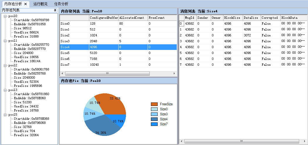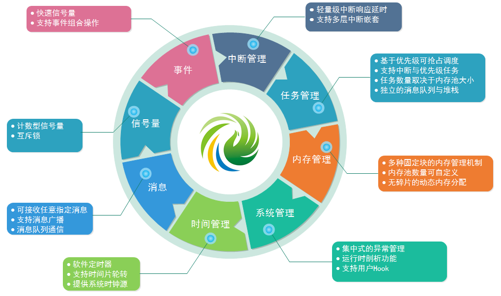 Ø 内存管理模块:采用了固定大小内存块的管理机制,支持动态分配内存,提供消息内存池管理方法;