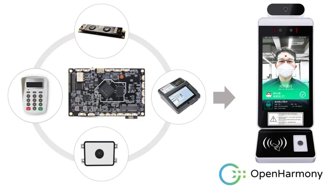 鸿蒙通行一体机方案以鸿蒙版AIoT-3568X人工智能主板为核心平台,搭载OpenHarmony操作系统,使用自研算法和国产芯片,可管可控,并提供身份识别以及其他外设配件生态链支持。