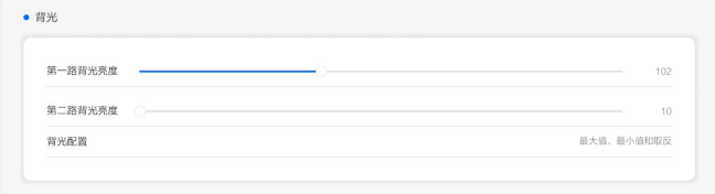 ①【背光配置】项,用于设置第一二路的背光最大、最小值范围,与【第一路背光】、【第二路背光】显 示的数字需要区分开;