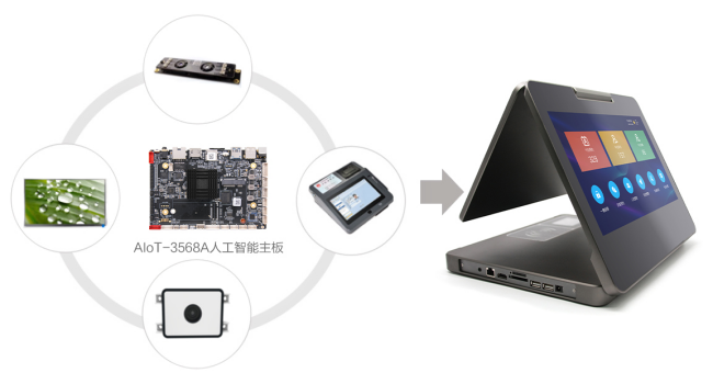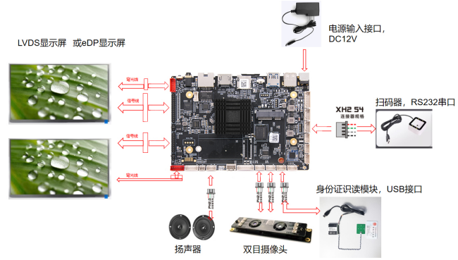 双屏访客机方案以AIoT-3568A人工智能主板为核心平台,并提供系统、身份识别以及其他外设配件生态链支持。
