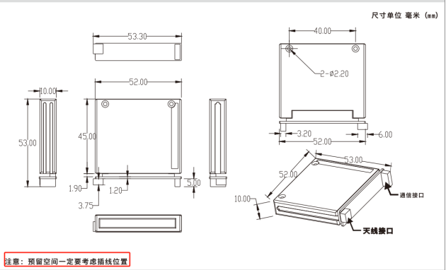 ●读卡天线周围建议留1-2cm的空间,不要有其他金属干扰、电磁干扰等以免影响读卡效果。