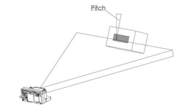 偏转降低了条码的高度。2°到 3°的俯仰角是最佳的,因为它可以防止条形码直接反射。模组可以读取的条形码偏转角度可达到 55°,但你应该缩短间距,以便提高读码效率。