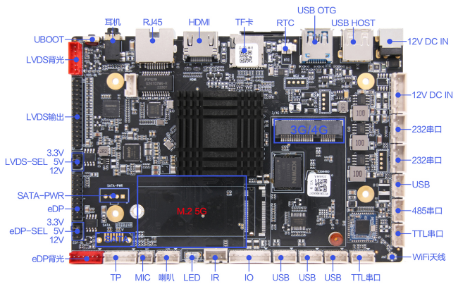 ①接LVDS/eDP屏时,需注意选择正确的屏工作电压3.3V, 5V, 12V,避免烧坏屏。