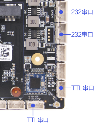 6、主板还有两路TTL和两路RS232串口(TTL串口采用4pin2.0m间距的PH插座,RS232串口采用的是4pin2.54mm间距的XH插座)如下图