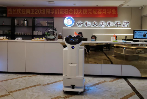 • 配送机器人在某会所为消费者提供配送服务。