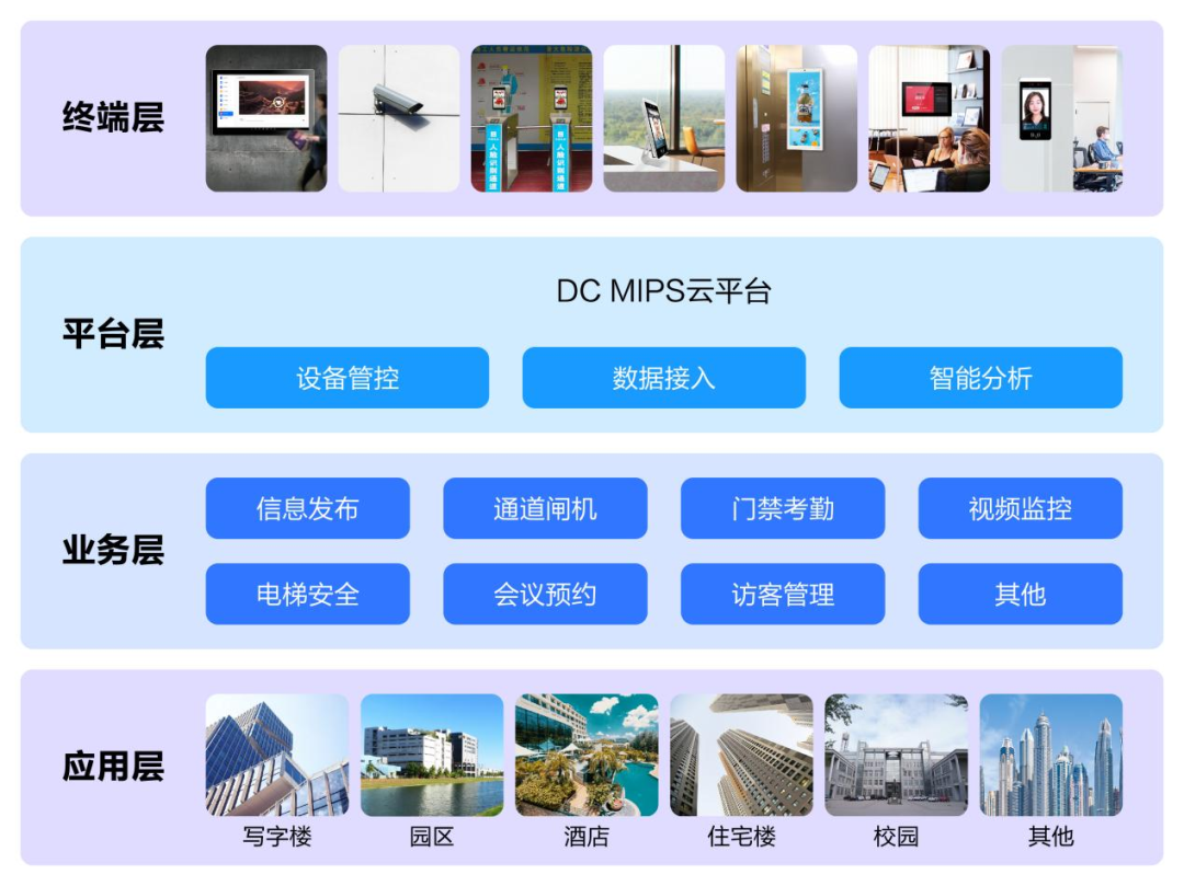 DC MIPS云智慧楼宇系统聚合了信息发布、通行管理、考勤管理、会议预约等多个功能模块, 实现不同系统间数据的集成和共享,通过数字化 运营 提升效能,降低运维成本,以精细化管理提升楼宇管理效率,通过智能化场景提升客户体验。
