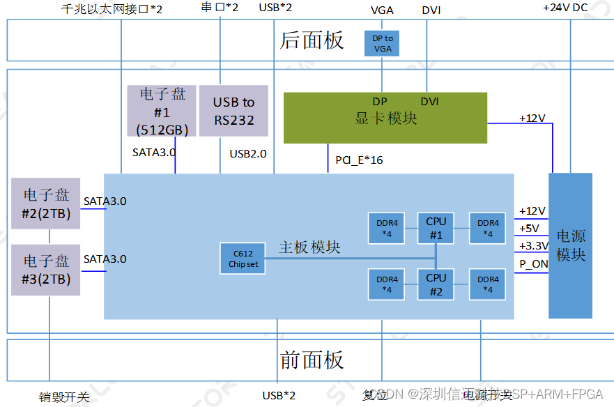 2*USB3.0接口(航插);指示灯;电源开关、复位开关、自毁开关。