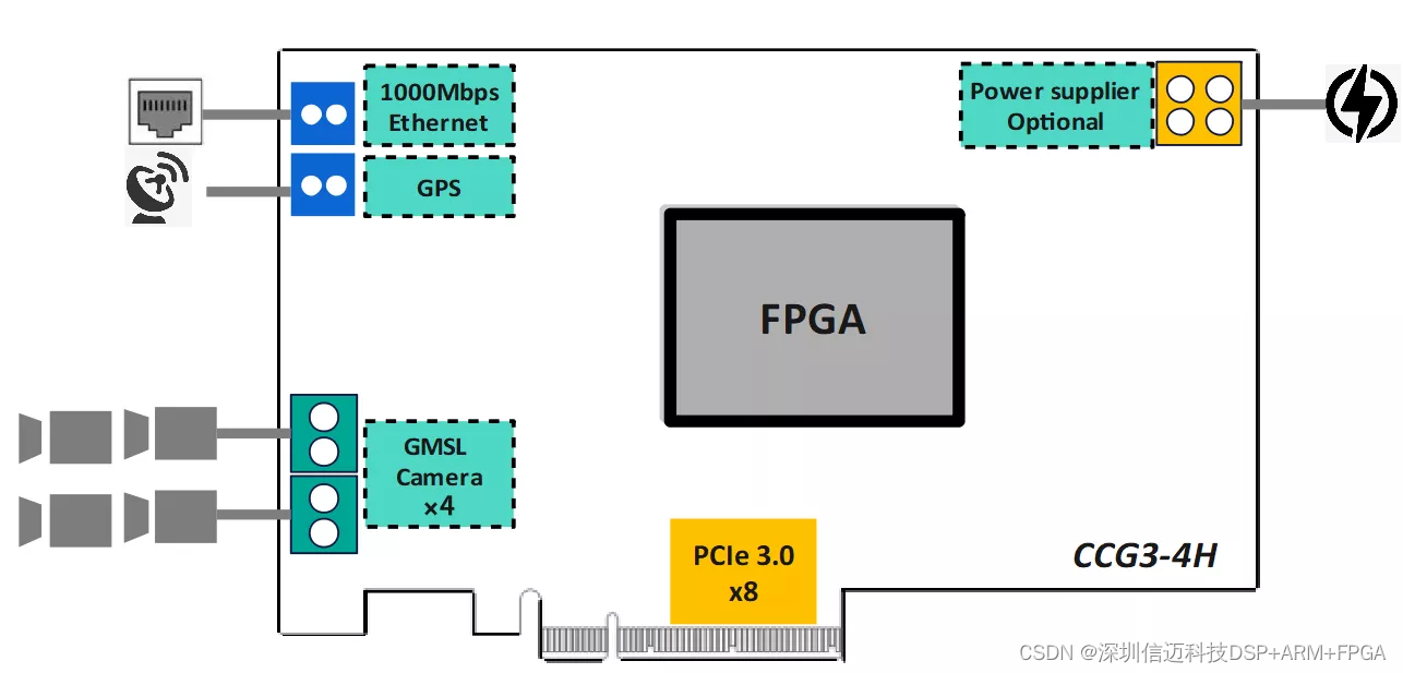  4个GMSL摄像头输入,最大支持800万像素30fps;