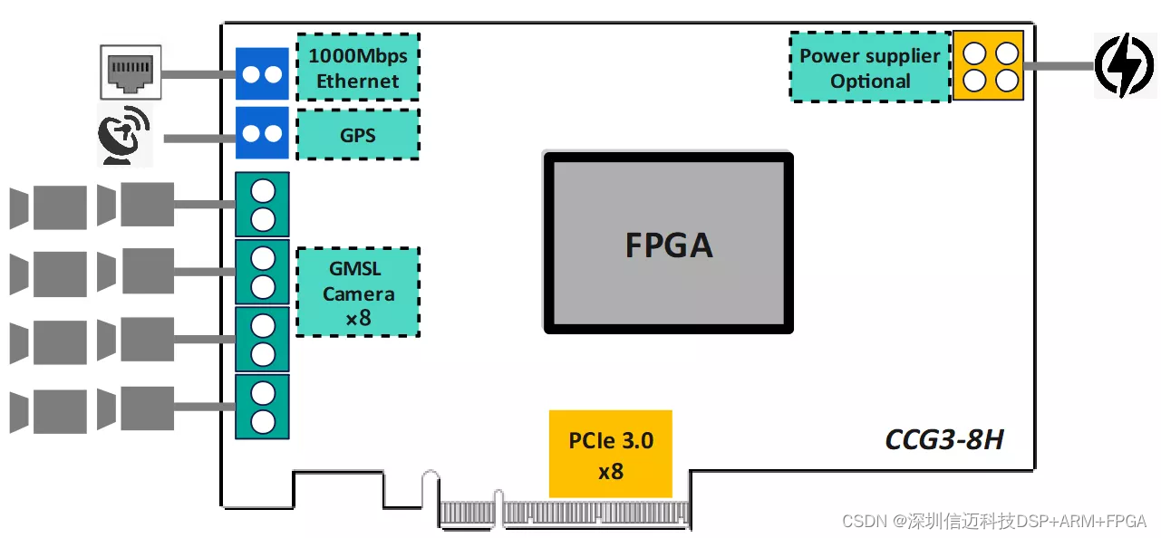  8个GMSL摄像头输入,最大支持800万像素30fps;