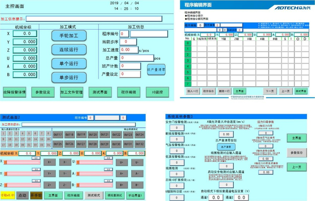 运控绕线机方案支持多工位同时动作,通过控制软件设置加工工艺类参数,伺服系统响应 SC 系列运动控制器的运动规划指令,旋转轴精确定位,飞叉轴快速旋转,将铜线绕在需加工的铁芯上。在绕线圈的同时,通过子程序进行上下料,及剥漆皮动作,避免传统的单一操作模式,有利的提高了机台的工作效率。