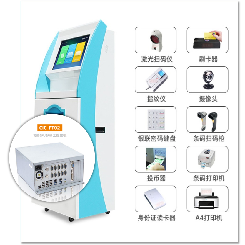 智算基于飞腾 D2000 处理器和国产操作系统推出的2国产化整机,可应用于各种金融 自助服务设备,如ATM机具、柜面终端、柜面一体机等。有多达10个串口和14个USB接口, 可通过USB口和串口连接各种外设,并通过网口和后端的 数据中心 通讯,来实现身份证读卡器/指纹仪 识别/磁条读写器/IC银行卡等功能,有效提高网点的智能化程度,简化业务办理流程,提升业务办理效 率,降低业务办理成本。