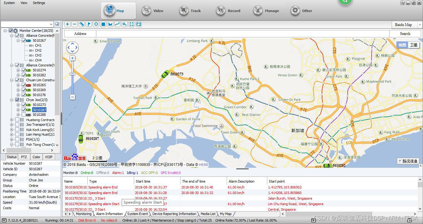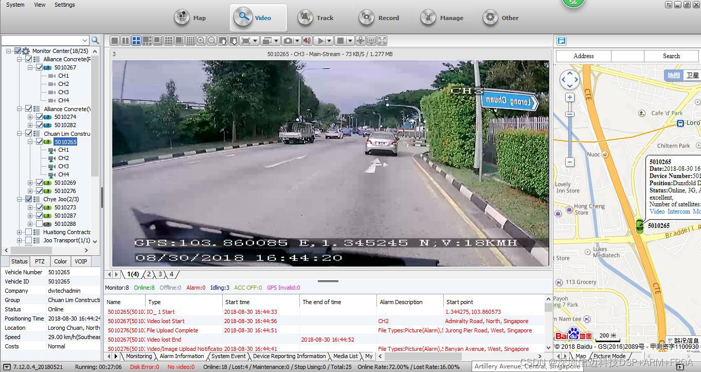 监控, GPS定位, 录像存储,车辆管理及报警预警等安全防范