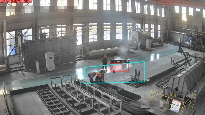 除此之外,还提供明火与烟雾识别、抽烟检测、消防通道堵塞识别、安全帽检测等多种算法,及时识别安全风险,有力地保障了现场的安全生产。
