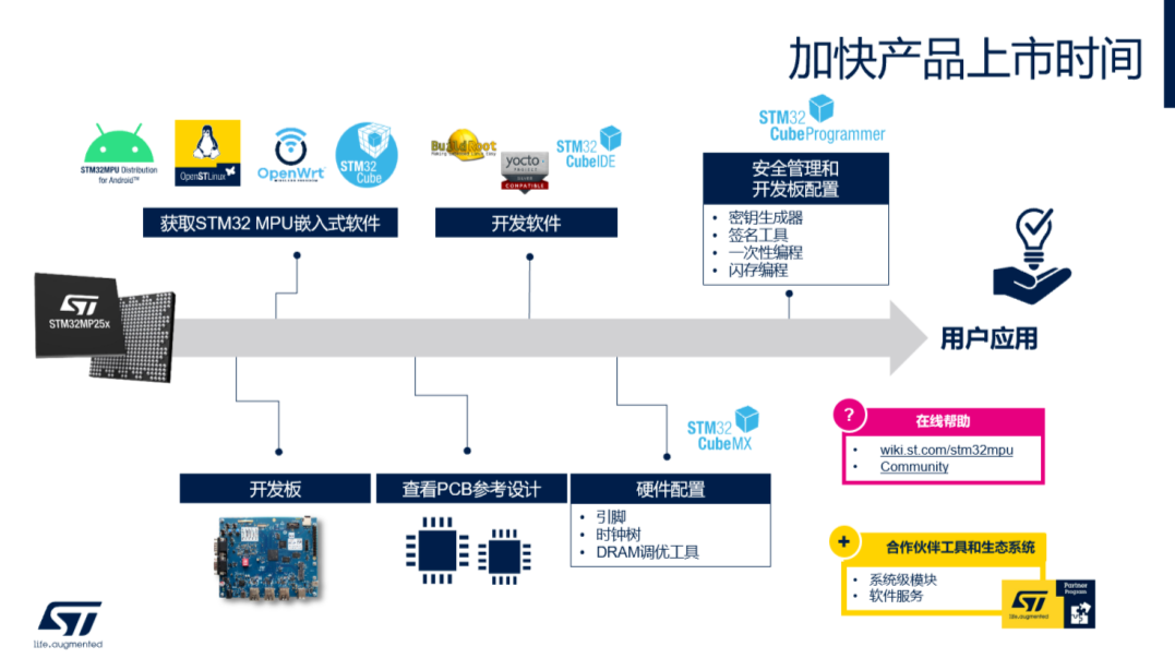 **STM32MP2软硬件生态:**借助STM32完备的生态系统,有效降低用户开发时间与成本。