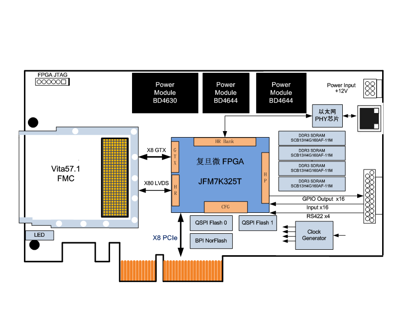 - 板载FPGA实时处理器:XC7K325T-2FFG900I,兼容复旦微JFM7K325T