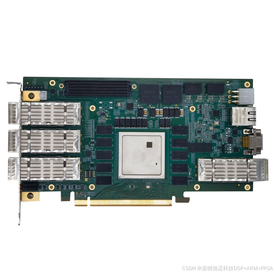 一款基于PCIE总线架构的4路QSFP28 100G 光 纤通道适配器,该板卡具有1个PCIe Gen3x16主机接口、一共4个QSFP28 100G光纤接口,可以实现4路QSFP28 100G光纤的数据实时采集、实时缓存与PCIE高速传输。该板卡采用Xilinx的高性能Virtex UltraScale+系列FPGA XCVU3P作为主处理器,板载2组独立的80位DDR4 SDRAM超大容量数据缓存。板卡具有1个RJ45千兆以太网口以及若干IO控制信号。 该板卡为标准全高PCIE尺寸,可广泛应用于基于服务器的光纤通道数据采集、数据传输等场景。