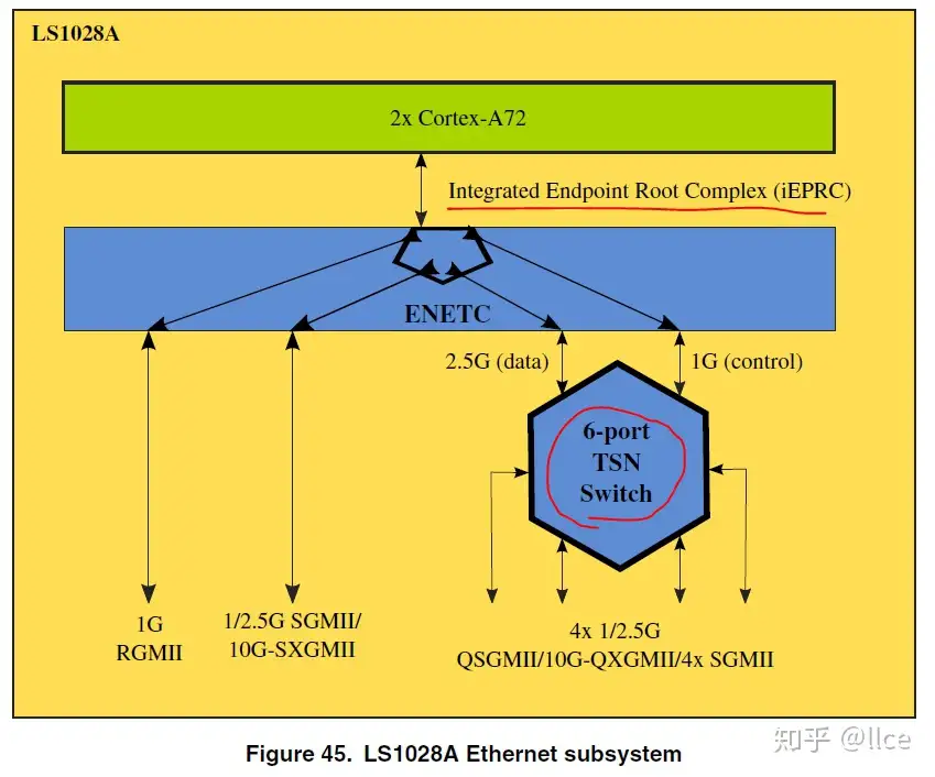 ENETC(以太网NET控制器)是一个4端口虚拟化以太网控制器,支持千兆级设计和时敏网络(TSN)功能,有两个外部以太网端口,两个内部端口连接到该交换机,并且充当Cortex-A72 CPU与ENETC和支持TSN的以太网交换机交互的PCI根联合体集成端点。