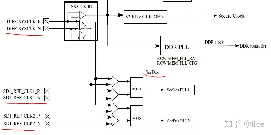SerDes的参考时钟源有2个,SYSCLK或者外部输入的REF_CLK。SYSCLK是固定100MHz的频率,当SerDes参考SYSCLK 100MHz的时候,有些接口功能是有限制的;使用外部的REF_CLK则可以灵活选择配置时钟。
