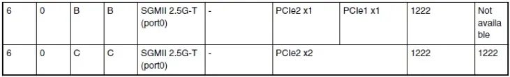 在LS1028A芯片中,SerDes可以配置下表的功能,不在表中的搭配是不允许使用的。