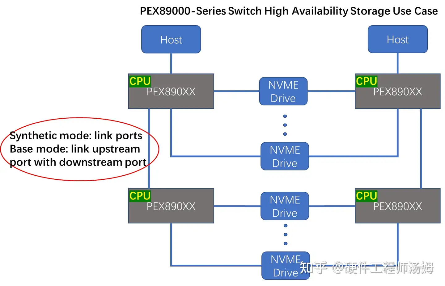 The challenge is to reserve PCle resources at configuration so that you can add devices later. Functionally, synthetic switch (sSw) mode uses management software to create a placeholder endpoint to reserve PCle resources. 如下图: