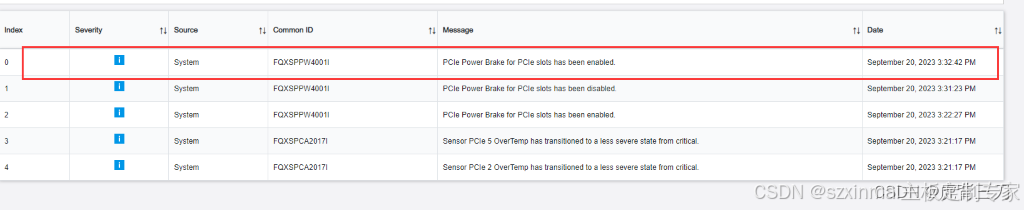 3、开机就会触发power brake,会在xcc web events log 将看到“【图一】”的效果