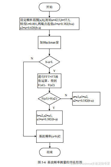 由基波频率测量程序流程图可知根据国标标准,测频范围为[42.5,57.5]Hz,测