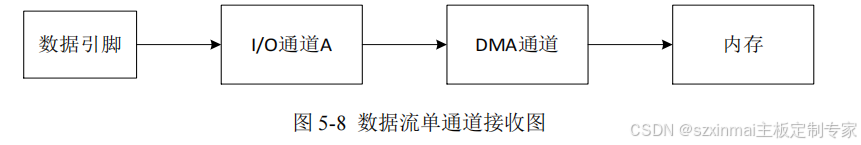 通过 I/O 通道 A 的然后存储在 upp 内部的 DMA 中,增加吞吐量,减轻 CPU 负担,