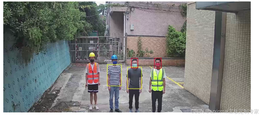 安全帽反光衣检测是指在监控场景中预先设定监测区域,在区域内人员没有穿戴安全帽反光衣的现象,及时触发告警。检测目标在1080p图像中的分辨率大小不小于30*30像素。