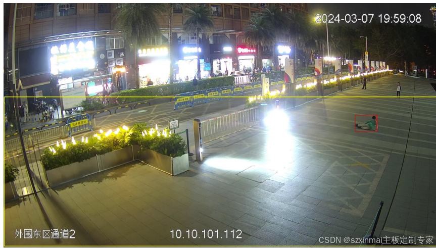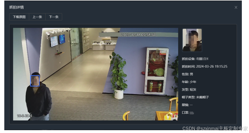 行人结构化检测(人脸识别)算法是指在监控场景中预先设定监测区域,当监测区域内发现非白名单库人员时触发告警。检测目标在1080p图像中的分辨率大小不小于30*30像素。
