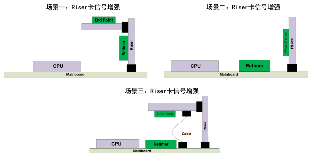 在PCIe 5.0中,Retimer的应用至关重要,尤其是在以下几种情况下: