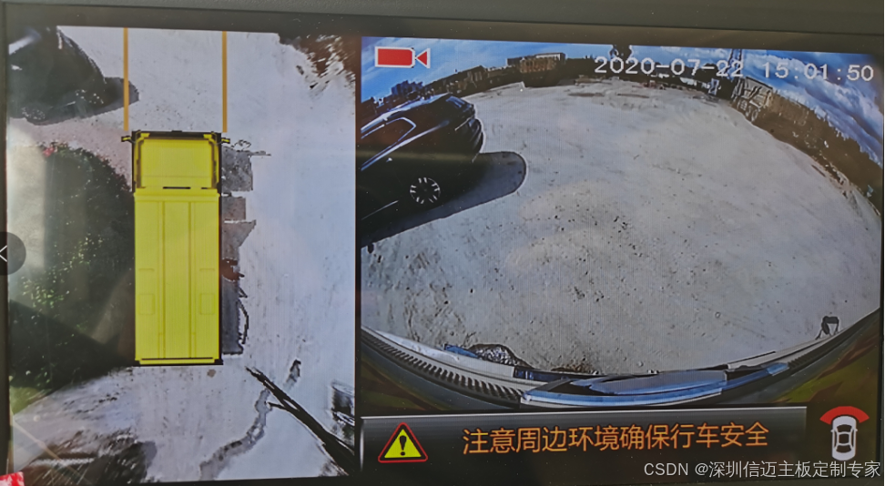 7、产品支持电子后视镜产品模式,主机特有的双AHD输出功能,可以将360的画面同时显示在两块屏幕上,有针对电子后视设计的专用软件,支持车速检测,可以实现在设定的速度时,输出控制信号控制电子后视镜显示切换。