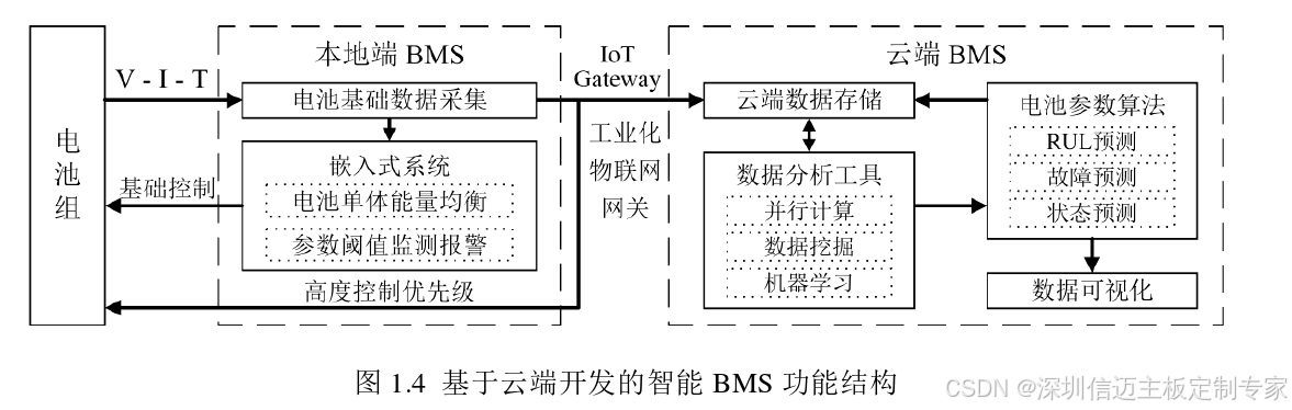 伴随近年来新型储能技术的高质量规模化发展,储能电站作为新能源领域的重要载体, 旨在配合逐步迈进智能电网时代,满足电力系统能源结构与分布的创新升级,给予相应规模 电池管理系统的设计与实现以新的挑战。同时,电子系统的端云协同设计概念已经十分成熟, 面对储能电站高度安全稳定的长期运行需求,边缘端与云端的功能架构划分需进一步完善, 于边缘端实现高性能运算成为储能电站 电池管理系统 (Battery Management System, BMS)设计 的创新性嵌入式解决方案。