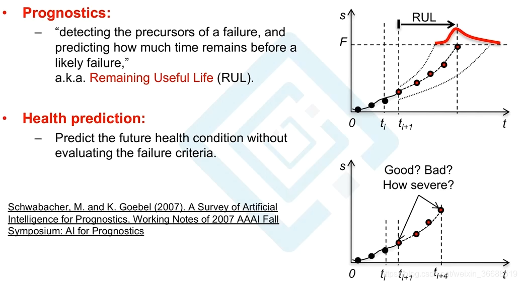 如果做PHM的话,其实我们更关心的不是它到失效的时间,而是失效发生之前它发生衰退的时间。这其实是做PHM的时候可以针对复杂系统做到的预测,它什么时候衰退到一个严重程度的技术。所以PHM所关心的是更精细的可靠性的分析。
